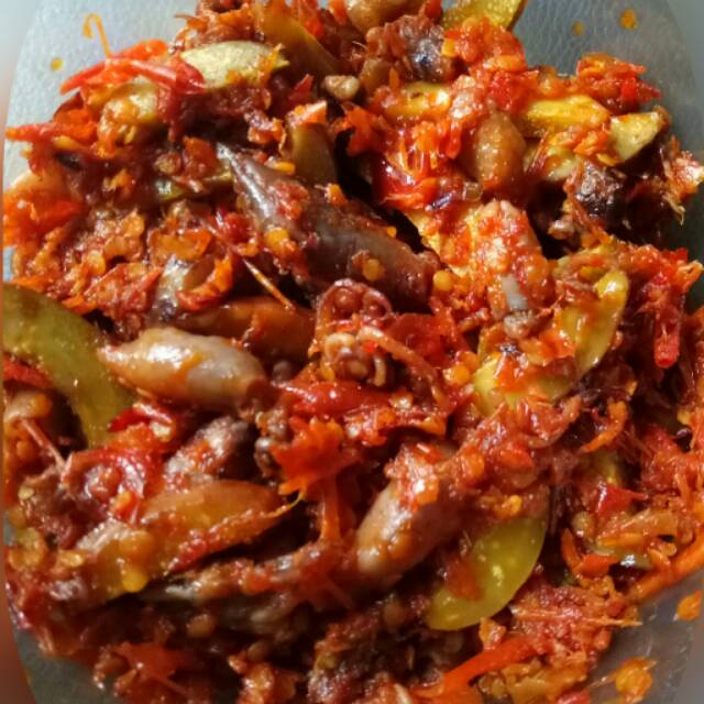 - Tumis bawang putih cincang,setelah harum,masukan irisan bawang merah, setelah bawang layu masukan potongan tomat dan daun jeruk, aduk sampai rata lalu masukan cumidan bumbu sambel, masak sebentar dengan api besar, tambah 1/2 gelas air matang, setelah mendidih tutu wajannya, masak dengan api kecil sampai keluar minyak, bumbui garam,gula dan kaldu bubuk